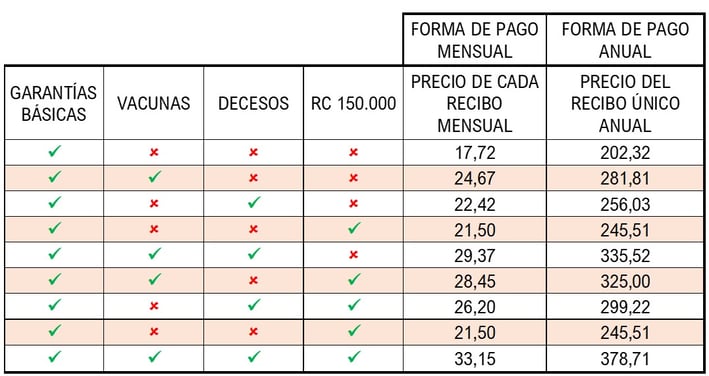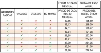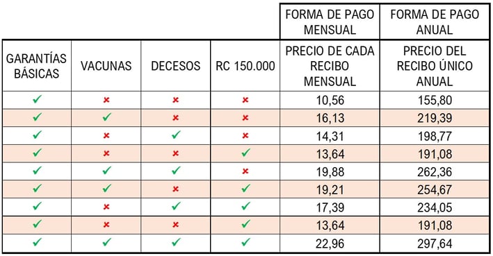 o Decesos del animal (+3,75 euros al mes o +42,97 euros al año)